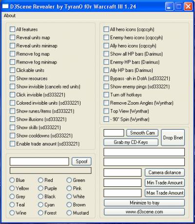1. Присоединиться к пользовательской игре. 2. Запуск DropBnet2.exe 3. Введите "/ ФЗ" или другую bnet чате команды убедитесь, что вы отключены от bnet. 4. Inject рубить. 5. Сыграйте в игру. 6. Как только игра закончена вы получите отключены от battle.net, вы должны затем закройте Warcraft 3 и закройте рубить, а затем начать Warcraft III и повторите шаги. Цитата: Паутина не являются прозрачными, когда у вас есть Bypass-AH включен. Отключите его и паутиной станет прозрачным снова. Главная » Файлы » Скачать Хаки Hack для Warcraft 3 » Хаки Map Hack 1.24c [ Скачать Map Hack 1.24c (248.3Kb) ] Добавлен 08/Декабрь/2009, в 21:01 Описание: WC3Gamer Maphack для 1.24c (Обнаружить, если вы не падают bnet) Кстати я поняла, вы могли бы капля в bnet лестнице игры без отключения ... V4 с DropBnet кнопки. Убедитесь, что вы отключены от bnet перед инъекцией особенность (тип bnet командой / FL, если она не работает, то значит вы отключены). Убедитесь в том, чтобы закрыть war3 и ваши хаки после каждой игры. Читайте надзиратель липким. Все сферы включена по умолчанию в settings.txt файла. Она попытается отказаться от всех сферах. Нет необходимости прикасаться к settings.txt файл, но убедитесь, что все остается в папке Tyrano. Обнаружено. Быстрое решение здесь для пользовательских игр: Используйте DropBnet кнопки в V4, прежде чем нажать любую из функций. Убедитесь, что вы отключены от bnet перед инъекцией особенность (тип bnet командой / FL, если она не работает, то это означает, что вы отключены. War3 Закрыть и закройте хаки после игры. ИЛИ DropBnet2.exe находится в папке DropBnet (производство Darimus). Вы можете использовать его, чтобы взломать в игре bnet пользовательских не обнаружили. Вам необходимо запустить его в пользовательскую игру перед включением любой из maphack особенностей. Закрыть war3 и закрыть хаки после игры. Руководством к действию в письме, если вы не хотите, чтобы получить запрещено: 1. Присоединиться к пользовательской игре. 2. Запуск DropBnet2.exe 3. Введите "/ ФЗ" или другую bnet чате команды убедитесь, что вы отключены от bnet. 4. Inject рубить. 5. Сыграйте в игру. 6. Как только игра закончена вы получите отключены от battle.net, вы должны затем закройте Warcraft 3 и закройте рубить, а затем начать Warcraft III и повторите шаги. Текущие Bugs: Прослушивают, - иконы Enemy. Будут показаны все героем икон. - Удалить увеличить углы тоже прослушивается. maphack для 1.24c Не забудьте запустить в качестве администратора на Vista! Убедитесь в том, config.ini находится в той же папке, WC3Gamer Map Hack 1.24c.exe или он не будет работать. Note0: Отключение "обойти AH в Dota" позволит вам исправить непрозрачные паутину ошибка. Кто использует функцию-а-а все равно? Просто отключите его и полотно будет исправлена. Примечание1: Для того чтобы healthbar ссылок на работу, отключить "Всегда показывать healthbars" в страницу Warcraft III. Примечание2: чтобы красно невидимые подразделения на работу, не позволяющие "Показать невидимой (отменяет красный единицы)" Note3: Вы должны быть по локальной сети или на battle.net для CD-Key хватая на работу. Остальное программа будет просто повесить, пока вы Подключить к одному. Note4: Smoothcamera и customcamera должны иметь разные BOOL ценностей. Например, customcamera = True, smoothcamera = False или customcamera = False, smoothcamera = True. Цитата: Паутина не являются прозрачными, когда у вас есть Bypass-AH включен. Отключите его и паутиной станет прозрачным снова. Features: - Save features in config.ini (customizable all features) - Grab your Cd-Keys - Reveal units - See Undead blight - Build on unexplored ground - Reveal units on minimap - Remove fog - Remove fog on minimap - Clickable units - See ressources - See invisible - Bypass -ah feature in DotA (Sd333221) - Show illusi